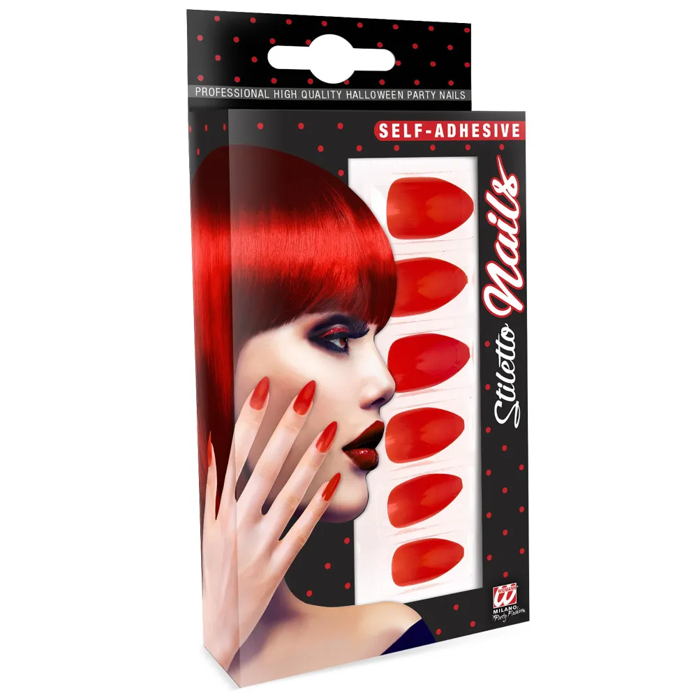 12 faux ongles rouges auto-adhésifs