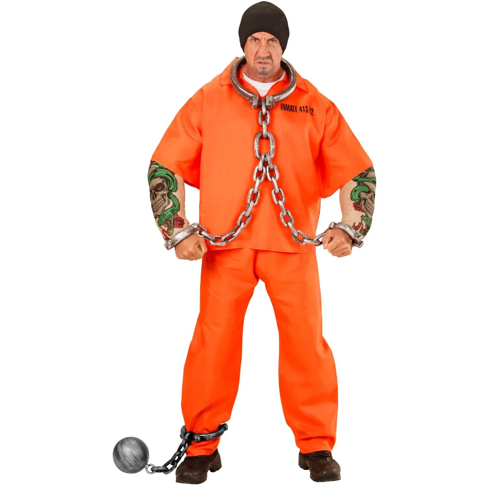 Boulet de bagnard avec chaine, pour accessoiriser un déguisement de prisonnier en uniforme rayé ou combinaison orange de détenu américain.
