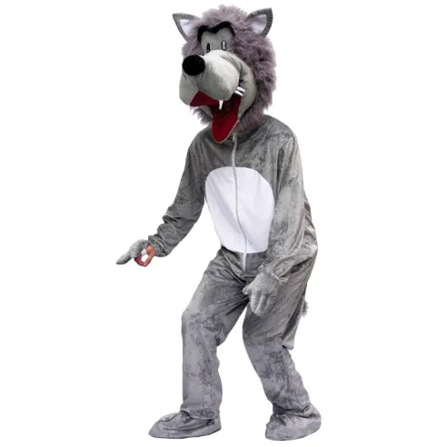 Ce déguisement n'est pas une mascotte. La tête de la personne qui le porte est visible dans la bouche de l'animal