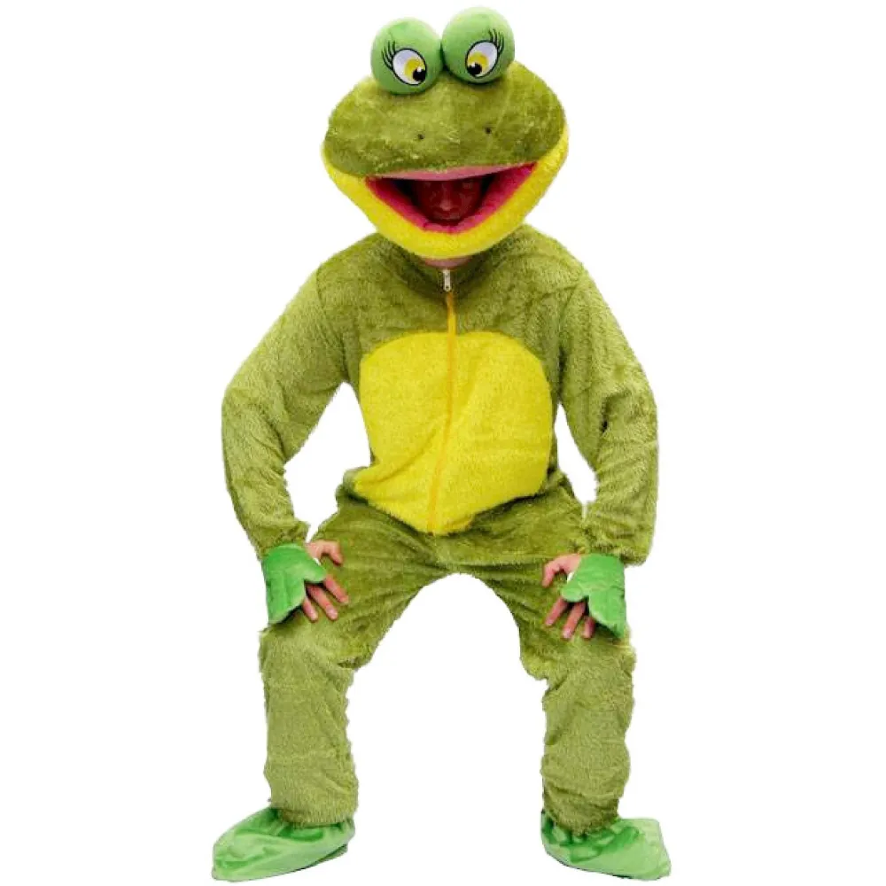 Ce déguisement n'est pas une mascotte. La tête de la personne qui le porte est visible dans la bouche de l'animal