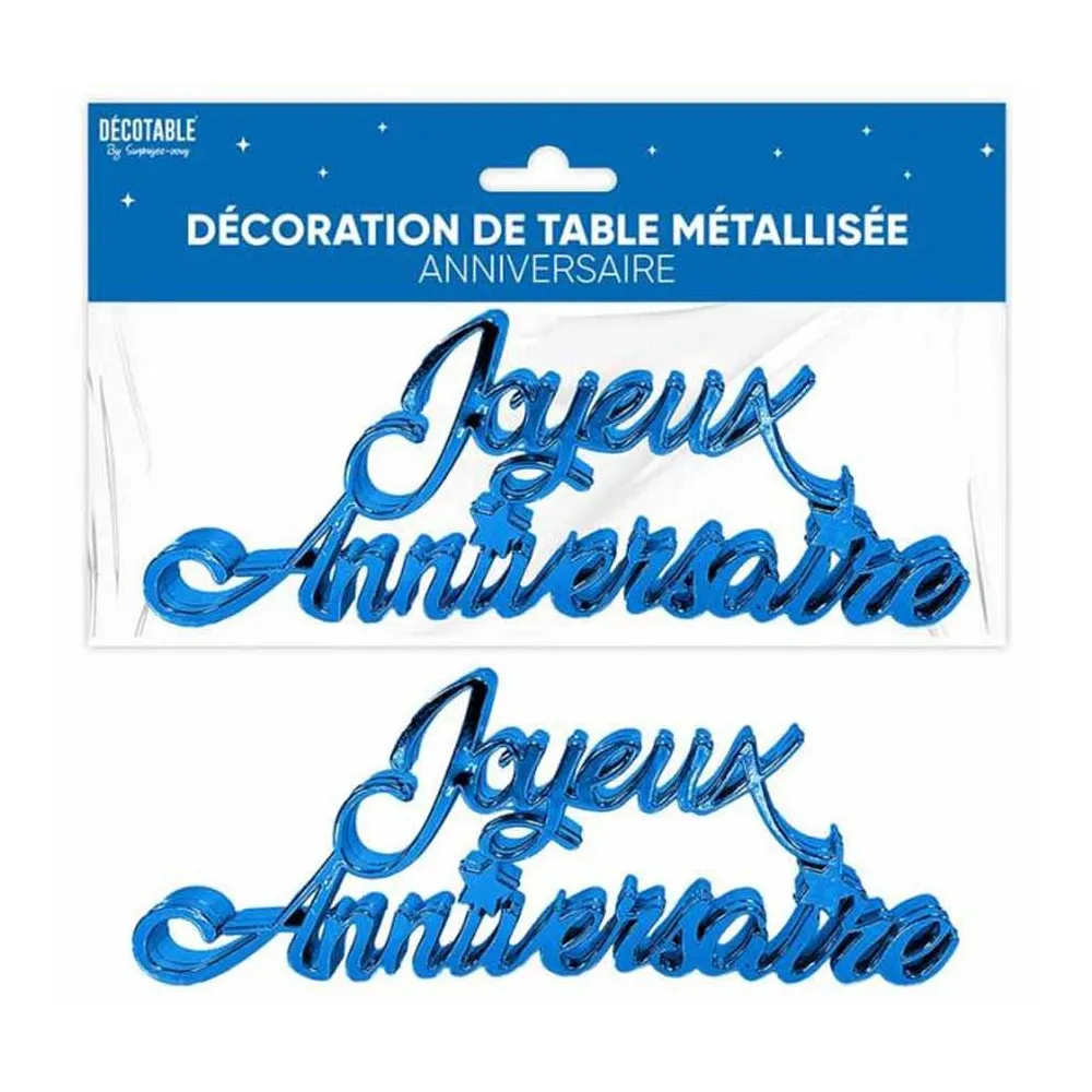 Décoration à poser sur la table lettres Joyeux Anniversaire métallisé couleur, un indispensable de la déco pour célébrer une année de plus.