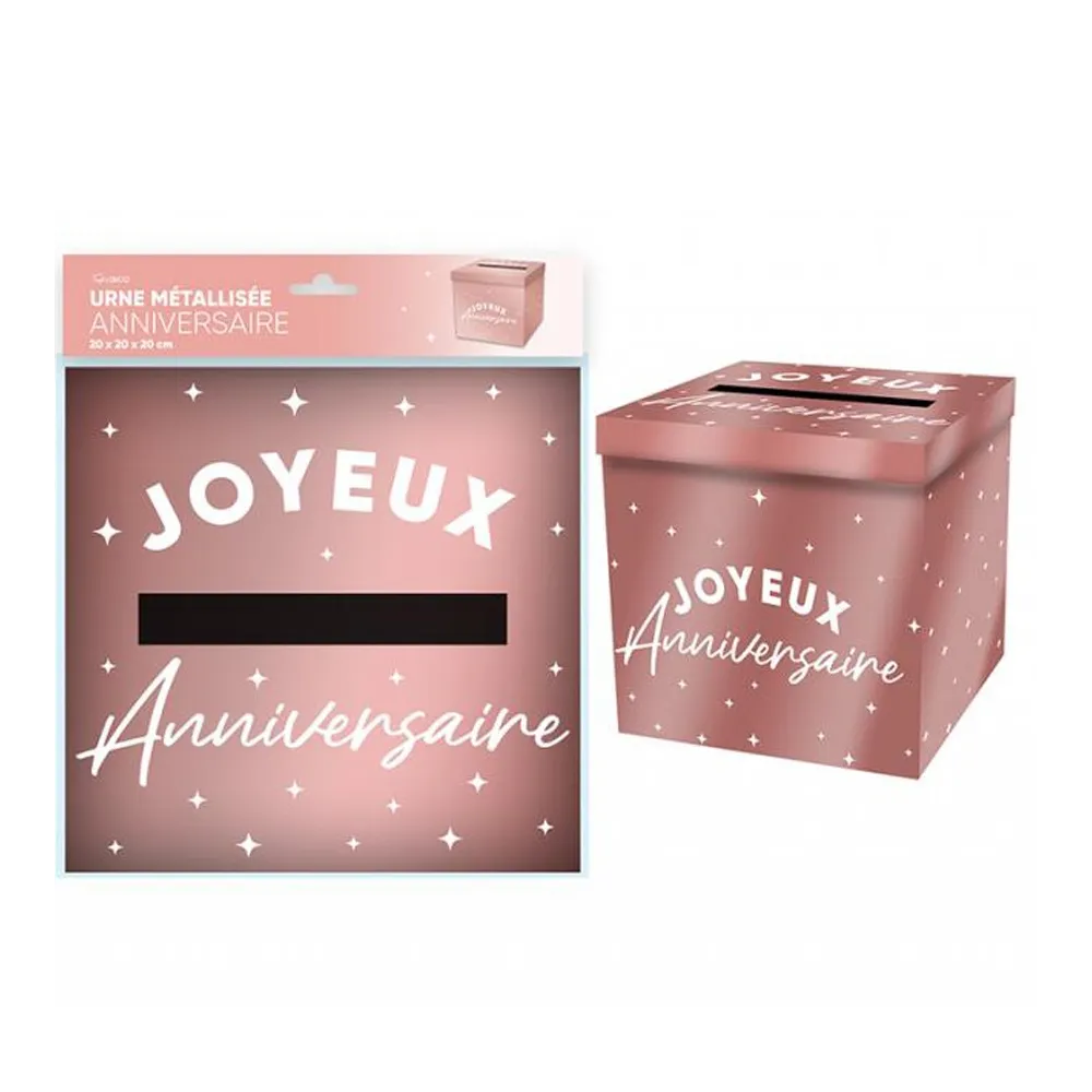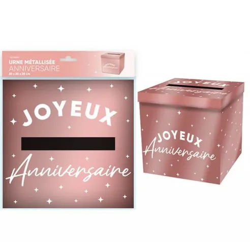 Urne décorative Joyeux Anniversaire couleur en carton rigide à poser sur une table, cette urne est l’accessoire déco indispensable pour collecter enveloppes, cartes de vœux, messages et petits cadeaux de vos invité. Urne livrée pliée.