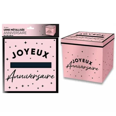 Urne décorative Joyeux Anniversaire couleur en carton rigide à poser sur une table, cette urne est l’accessoire déco indispensable pour collecter enveloppes, cartes de vœux, messages et petits cadeaux de vos invité. Urne livrée pliée.
