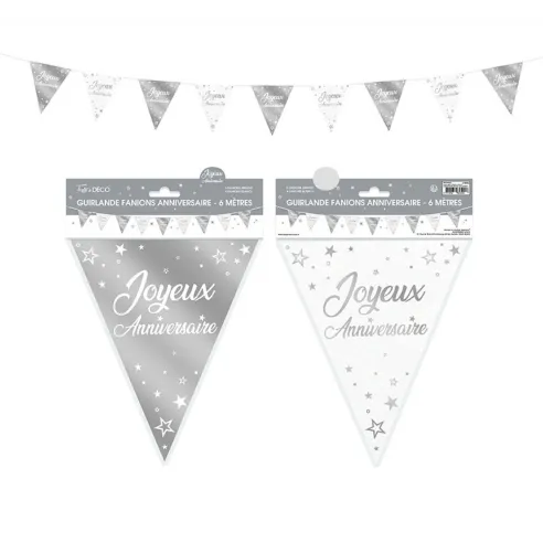 A la recherche d'une décoration festive et remarquable pour un anniversaire ? Cette guirlande fanion est faite pour vous. En papier épais, elle mesure 6 mètres de long. Estampillée "Joyeux anniversaire" avec des étoiles étincellantes, elle prendra une place remarquée aussi bien sur un mur que sur un buffet.