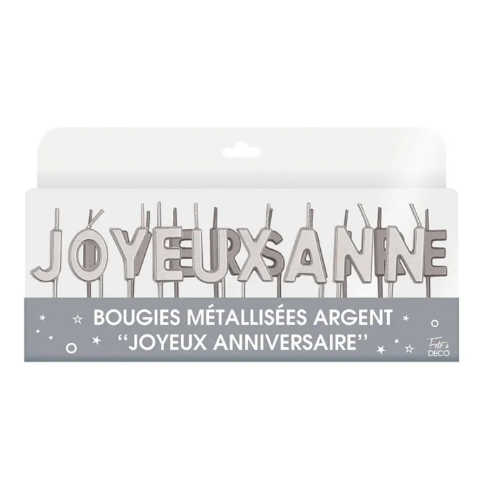 Composition de 18 bougies Lettres composant les mots JOYEUX et ANNIVERSAIRE