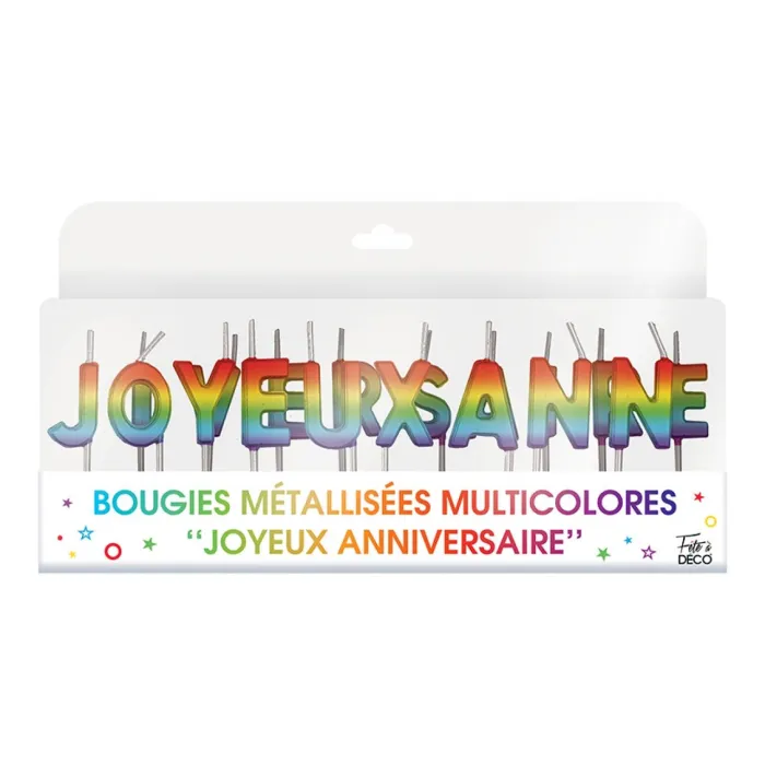 Composition de 18 bougies Lettres composant les mots JOYEUX et ANNIVERSAIRE