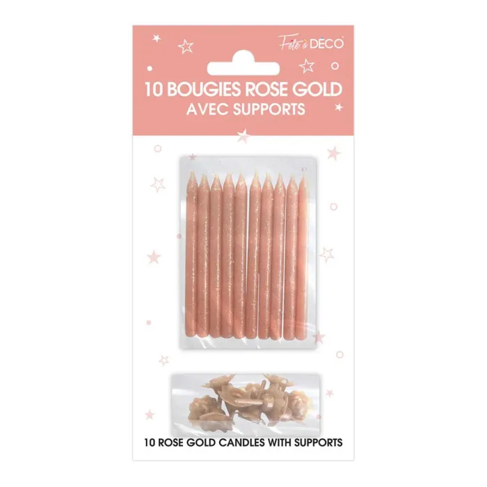 Envie d'apporter une touche de couleur à votre gâteau ? Optez pour ce lot de 10 bougies couleur pailletées et leurs supports. Disposez les sur votre gâteau à votre guise et selon le nombre d'années à souffler.