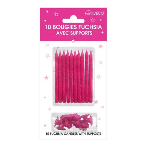 Envie d'apporter une touche de couleur à votre gâteau ? Optez pour ce lot de 10 bougies couleur pailletées et leurs supports. Disposez les sur votre gâteau à votre guise et selon le nombre d'années à souffler.