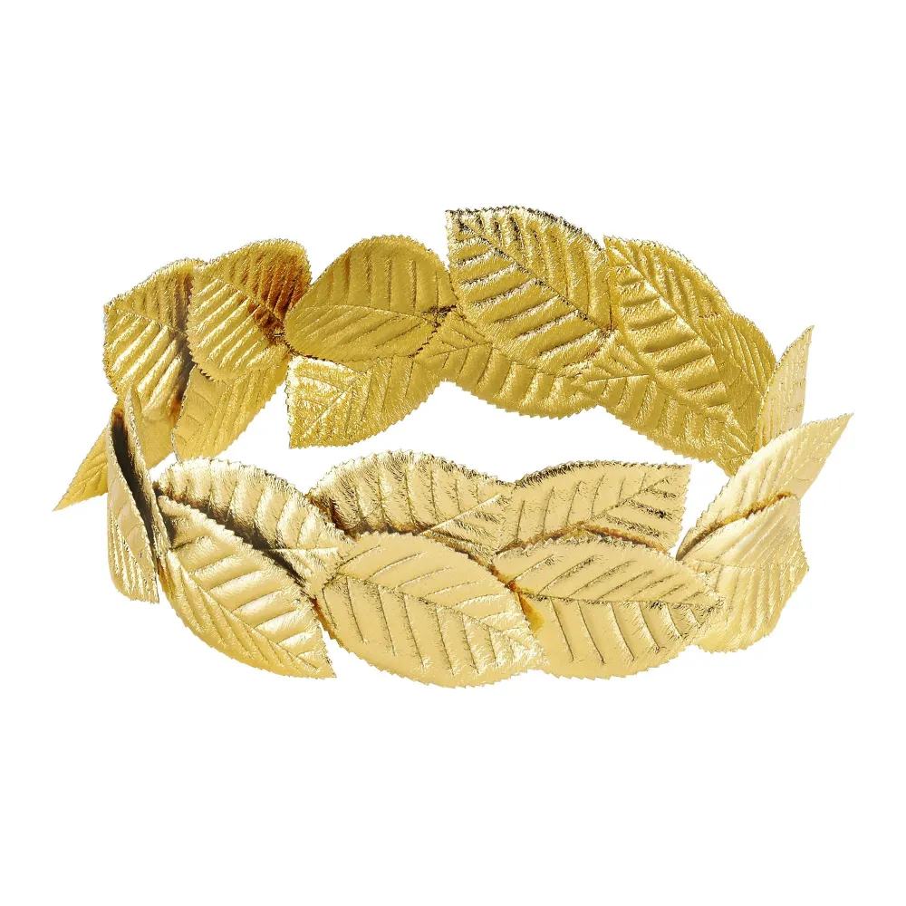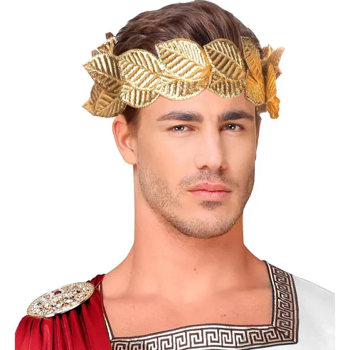 Couronne de lauriers de couleur dorée pour compléter un déguisement de Jules César. Nombreux accessoires sur le thème antiquité disponible chez Festimania.