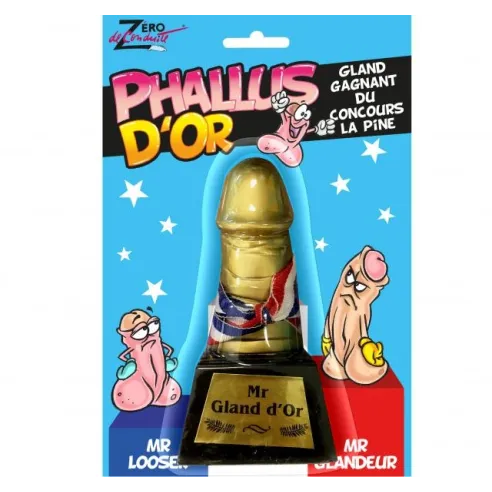 Voici un cadeau original qui fera forcément rire au moment de l'ouverture des cadeaux. Ce trophée zizi, décoré d'une écharpe tricolore, sera parfait pour honorer un proche champion du gland !
