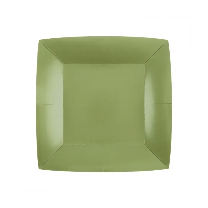 Lot de 10 assiettes carréesMatière: fibres naturelles 290g/m² Dimensions: 23x23cm