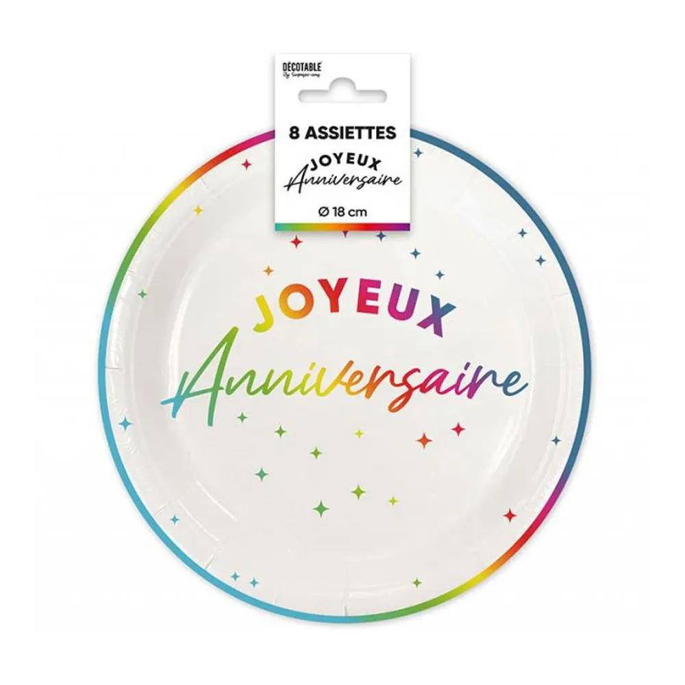 8 assiettes Joyeux Anniversaire couleur ⌀ 18cm