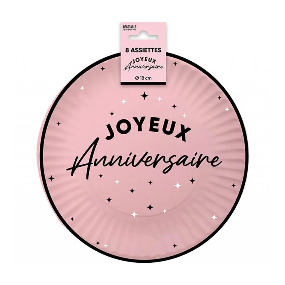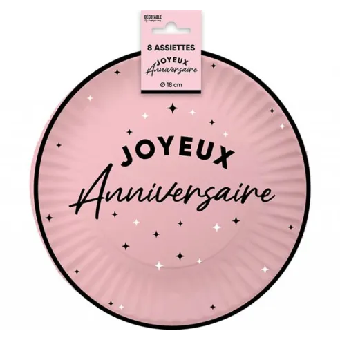 8 assiettes Joyeux Anniversaire couleur ⌀ 18cm