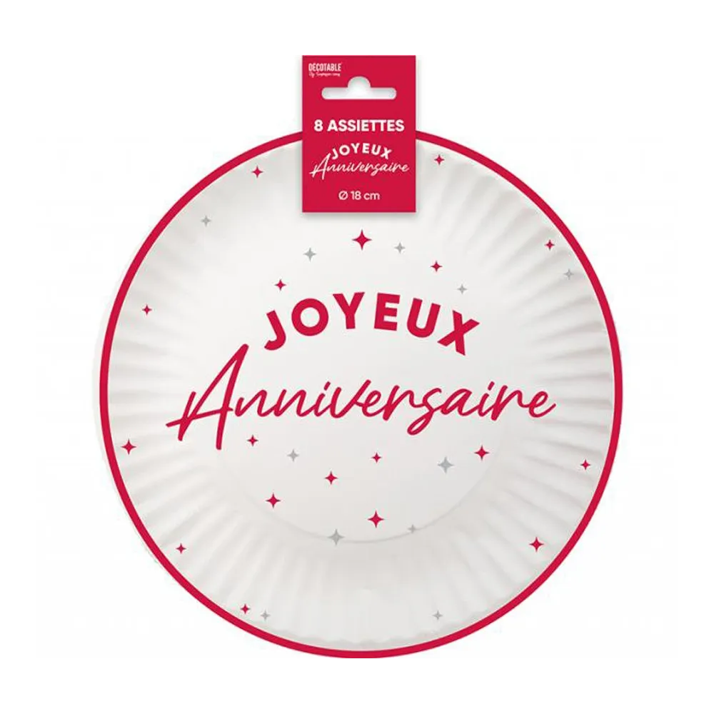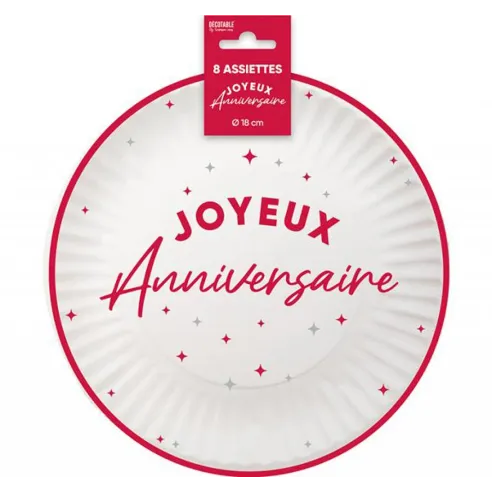8 assiettes Joyeux Anniversaire couleur ⌀ 18cm