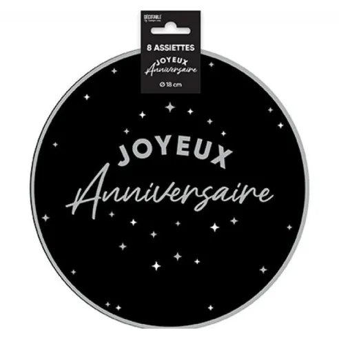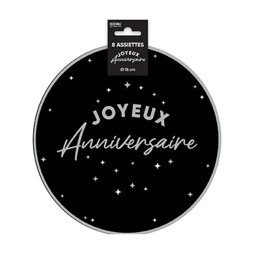 8 assiettes Joyeux Anniversaire couleur ⌀ 18cm