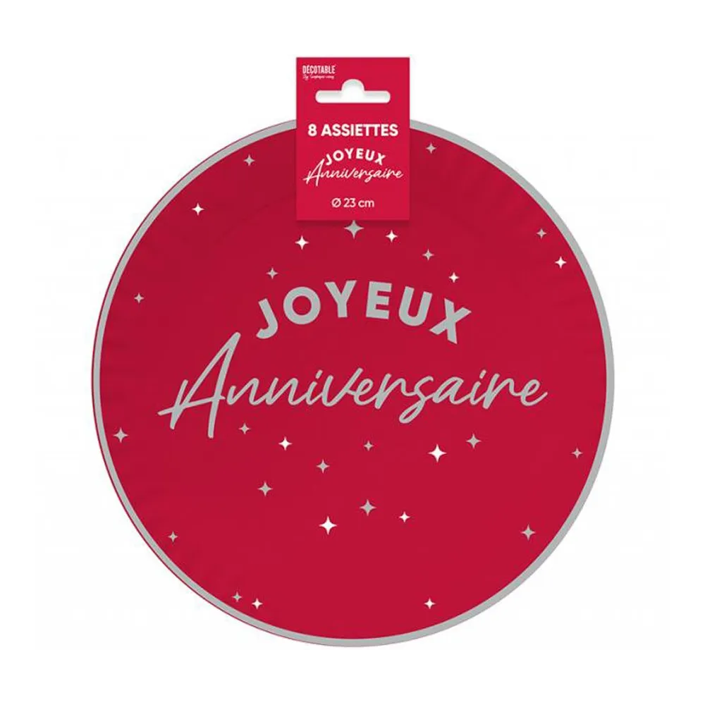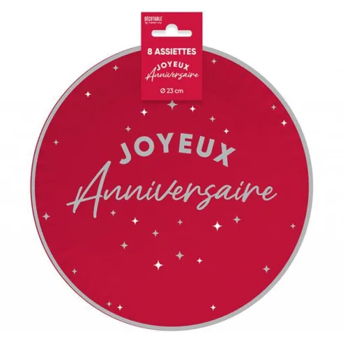 8 assiettes Joyeux Anniversaire couleur ⌀ 23cm