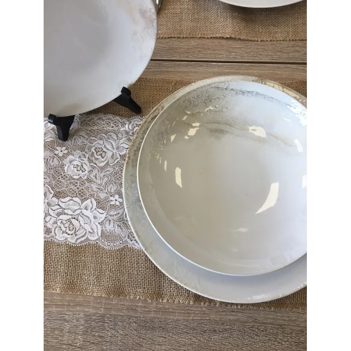 Assiettes pour l'entrée ou le dessert de la gamme en grès HéliaForme ronde Diamètre 21cm Nettoyage compris dans le prix de la location Tarif au départ de nos entrepôts