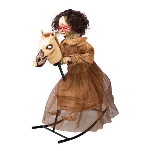 Fillette maudite sur cheval à bascule animé
