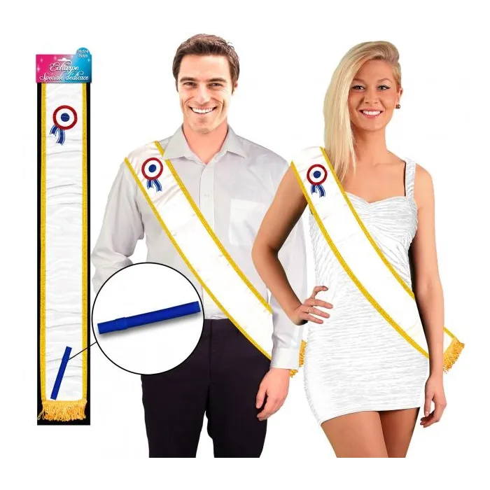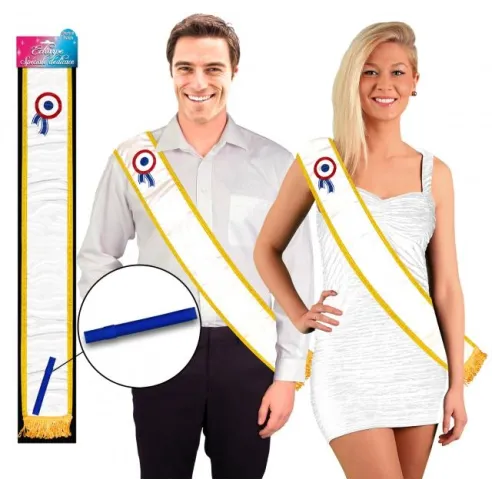 Décernez votre propre titre de Miss ou Mister sur cette écharpe personnalisable ou encore dédicacez la tout simplement.