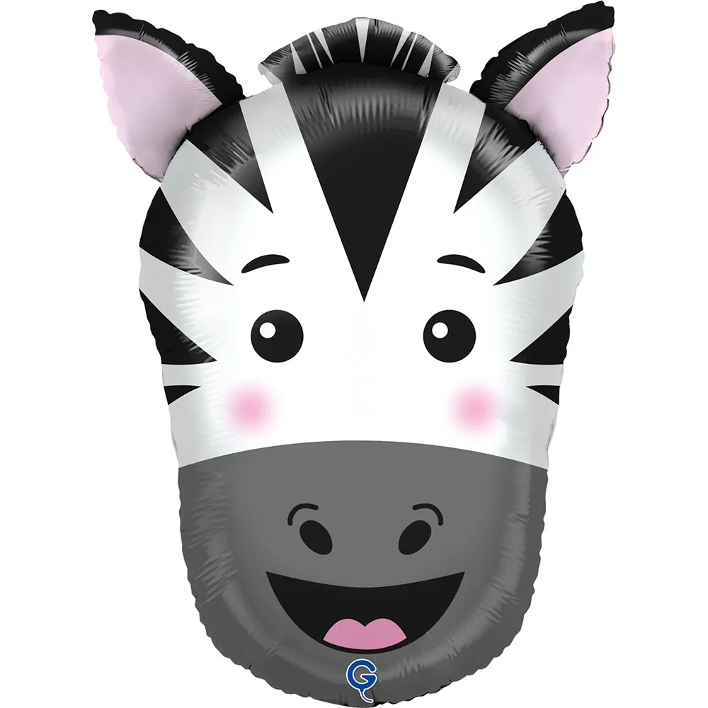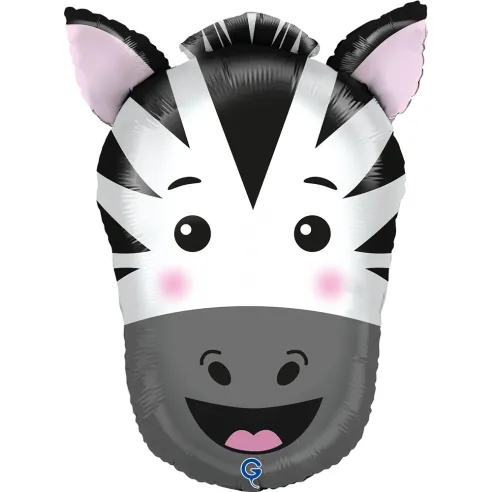 Ballon en forme de tête de zèbre mesurant 42x58cm, à offrir pour un anniversaire enfant ou pour une décoration sur le thème de la savane.