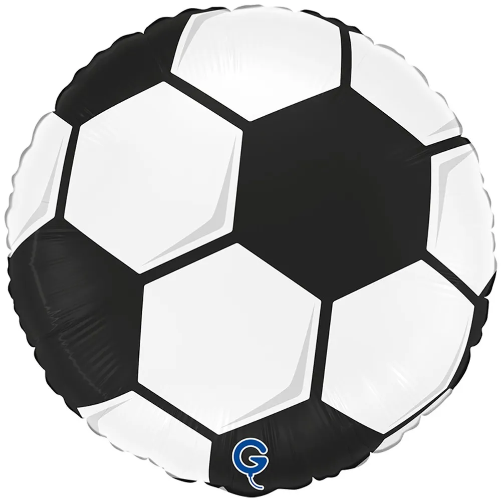 Ballon rond aluminium de football d'un diamètre de 46cm, à offrir pour un anniversaire enfant ou pour faire une décoration sur le thème du sport.