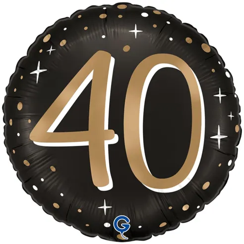 Ballon anniversaire 40 ans mylar de couleur noir avec petites étoiles et pois blancs et marrons.