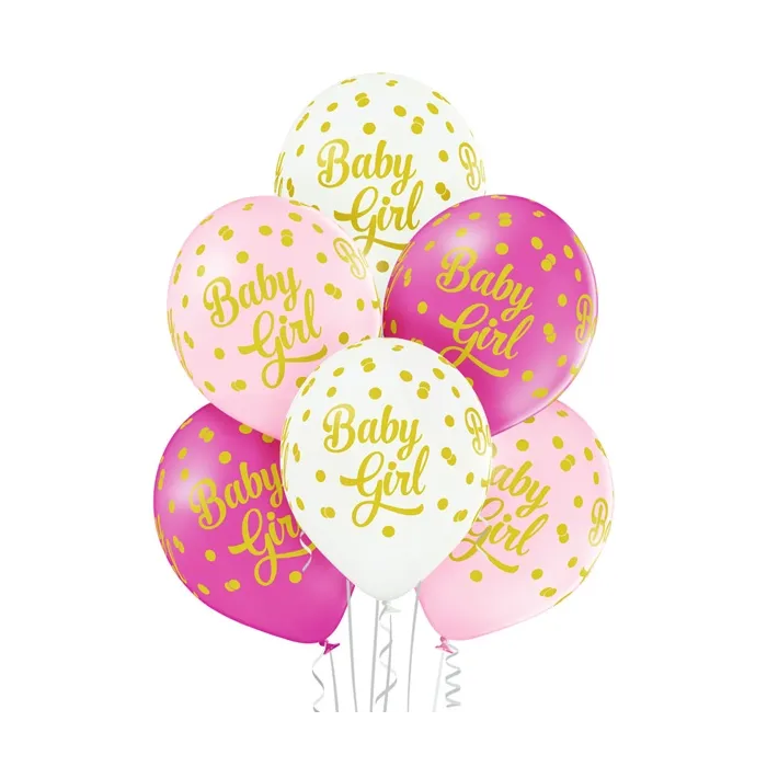 6 ballons baby girl pois