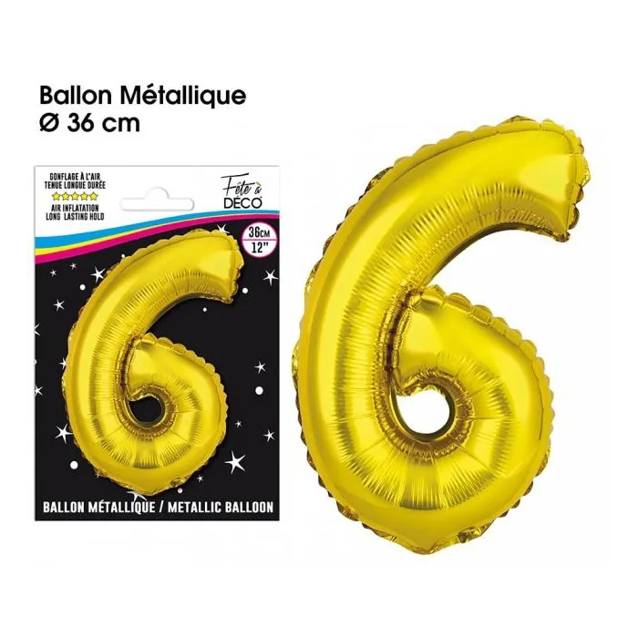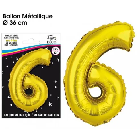 Ballon mylar 36cm or - Chiffre 6