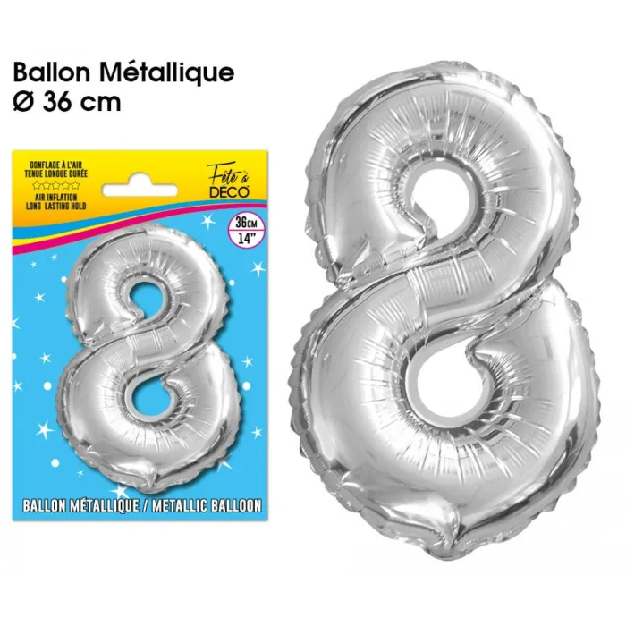 Ballon mylar 36cm argent - Chiffre 8
