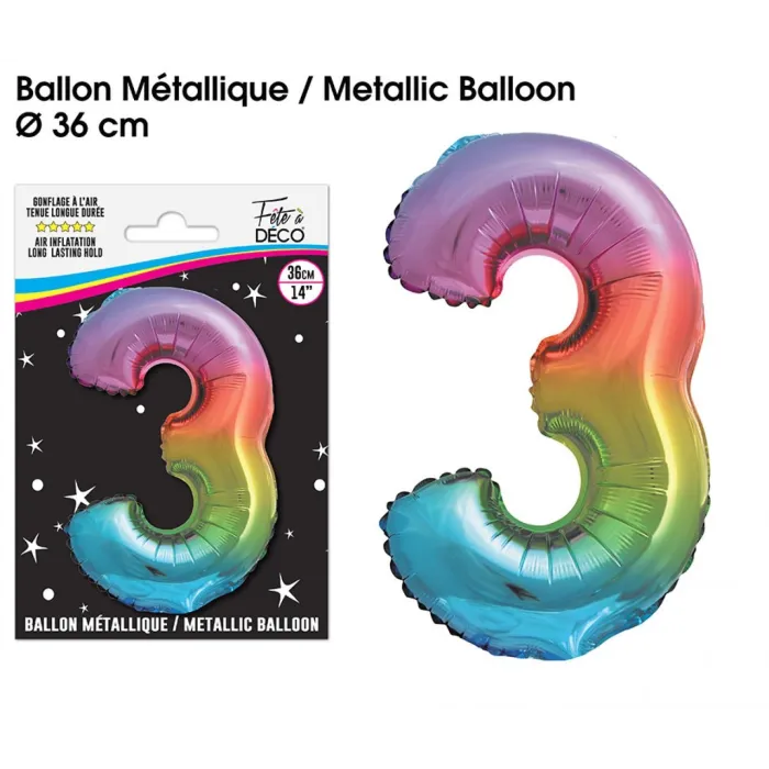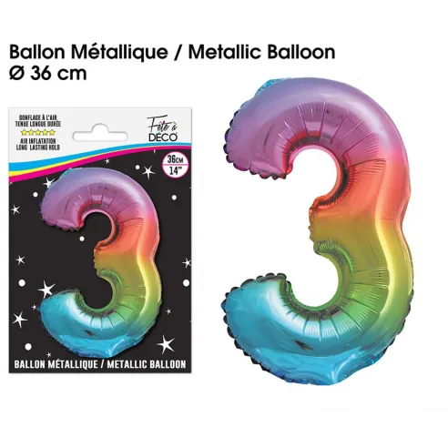 Ballon mylar 36cm multicolore - Chiffre 3