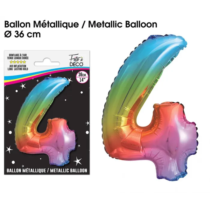 Ballon mylar 36cm multicolore - Chiffre 4