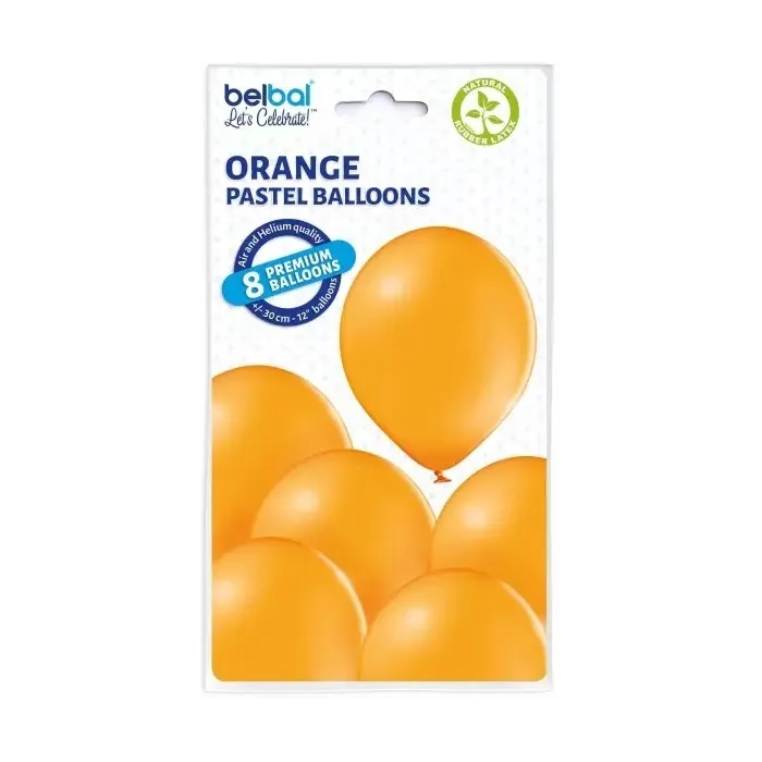 Taille: diamètre 30cm Groupe de couleurs: Pastel Conditionnement: paquet de 8 ballons Gonflage air ou hélium Ballon 100% latex