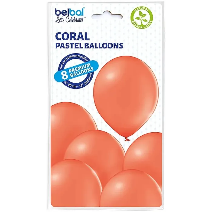 Taille: diamètre 30cm Groupe de couleurs: Pastel Conditionnement: paquet de 8 ballons Gonflage air ou hélium Ballon 100% latex