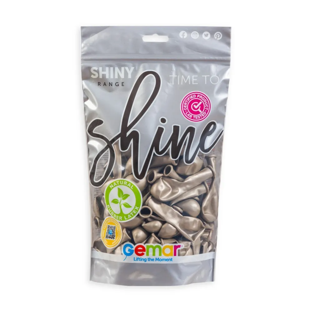 Sachet de 50 ballons latex shiny brillants d'un diamètre de 13cm. Préparez une décoration de maison ou de salle facilement avec notre gamme de ballons colorés, pour tous vos événements de fête.