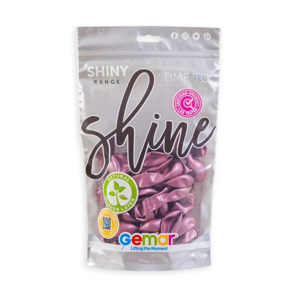 Sachet de 50 ballons latex shiny brillants d'un diamètre de 13cm. Préparez une décoration de maison ou de salle facilement avec notre gamme de ballons colorés, pour tous vos événements de fête.