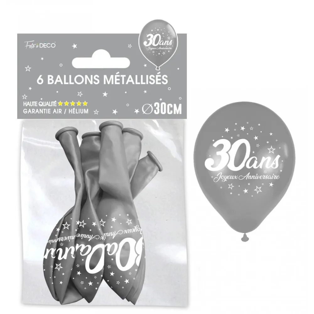 6 ballons anniversaire 30 ans argentés