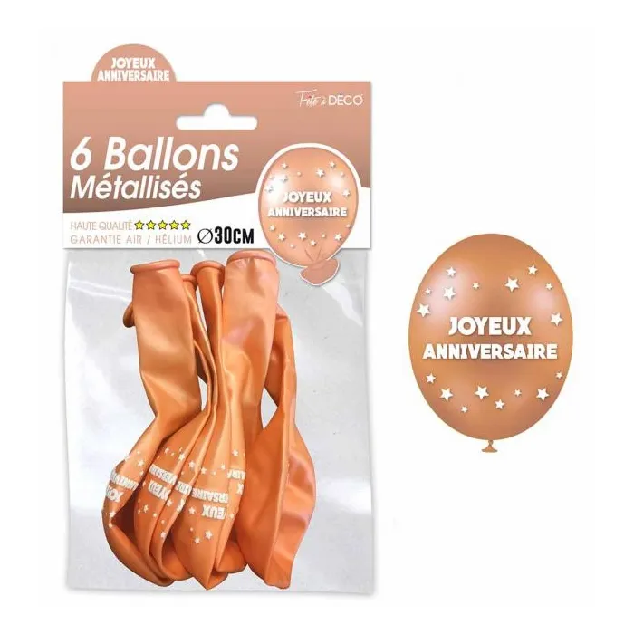 6 ballons joyeux anniversaire - Cuivre