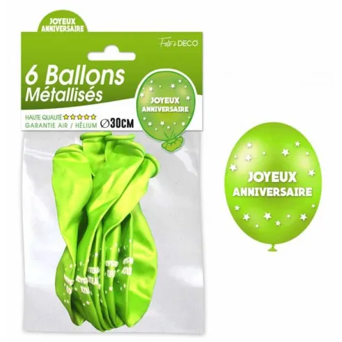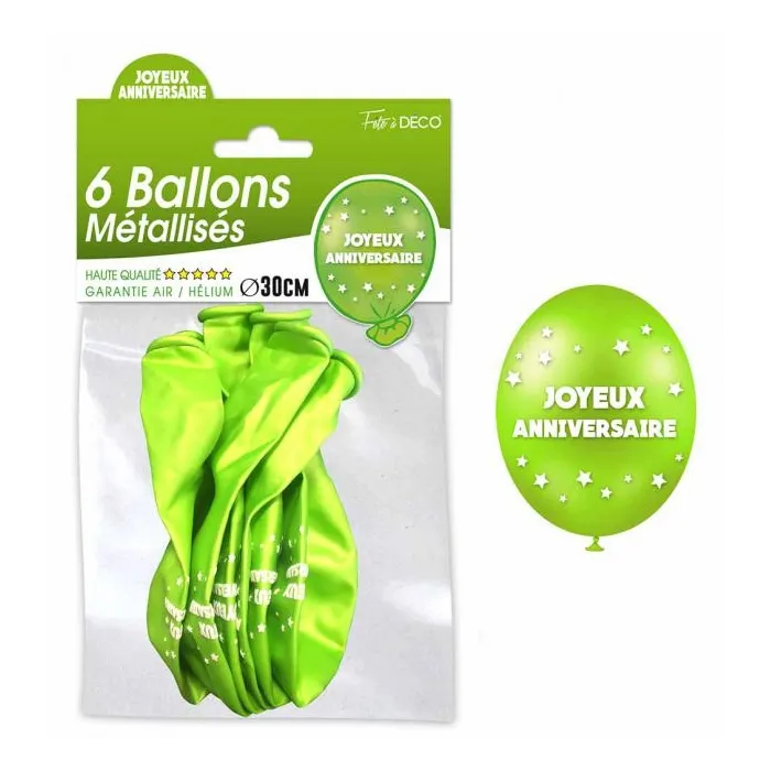 6 ballons joyeux anniversaire - Vert