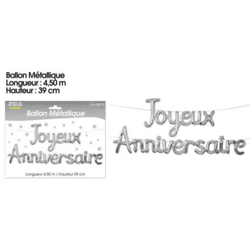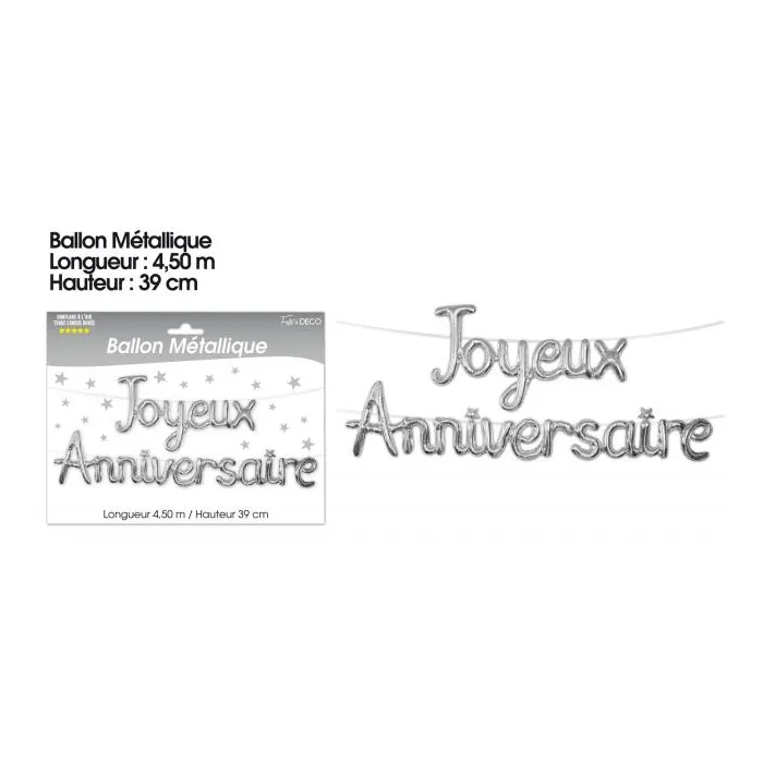 Créez une décoration festive en couleur grâce à ces ballons métaliques sérigraphiés "joyeux anniversaire". Avec une hauteur de 39 cm et une longueur de fil de 4m50, ces ballons tiendront une place importante dans la création de votre ambiance ! Gonflables à l'air ils sont garantis longue durée