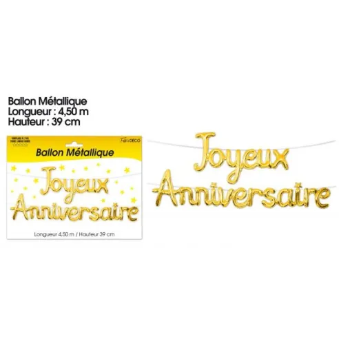 Créez une décoration festive en couleur grâce à ces ballons métaliques sérigraphiés "joyeux anniversaire". Avec une hauteur de 39 cm et une longueur de fil de 4m50, ces ballons tiendront une place importante dans la création de votre ambiance ! Gonflables à l'air ils sont garantis longue durée