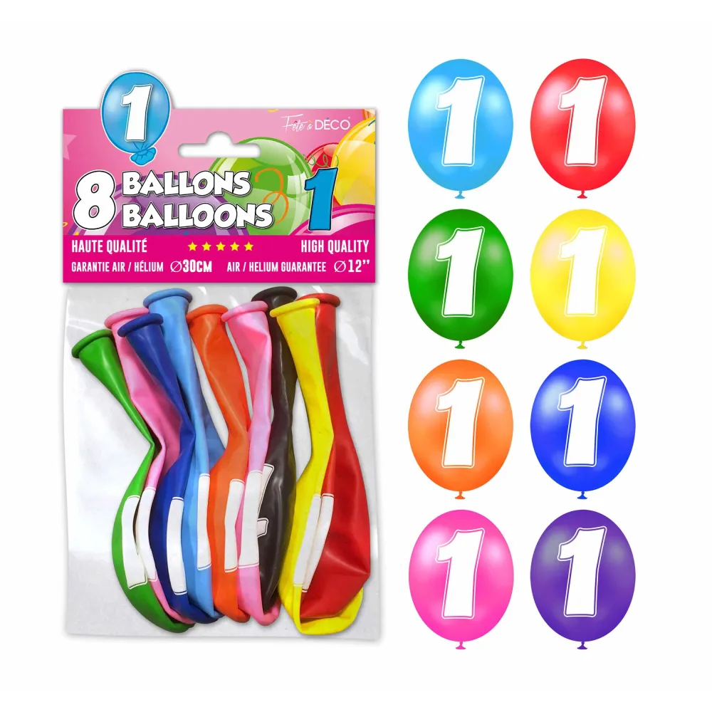 8 ballons chiffre 1 pour décoration anniversaire enfant
