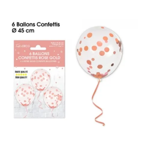 Sachet de 6 ballons transparents garnis de confettis à la couleur de 45 cm de diamètre "Haute qualité garanti AIR/Hélium". Chaque ballon est accompagné d'un bolduc de couleur de 50 cm.