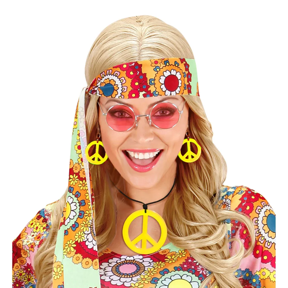 Complétez votre déguisement rétro avec ce collier hippie et ses boucles d’oreilles assorties couleurs fluorescentes. Un ensemble de bijoux inspiré de l’esprit Peace & Love et Flower Power des années 60 et 70.