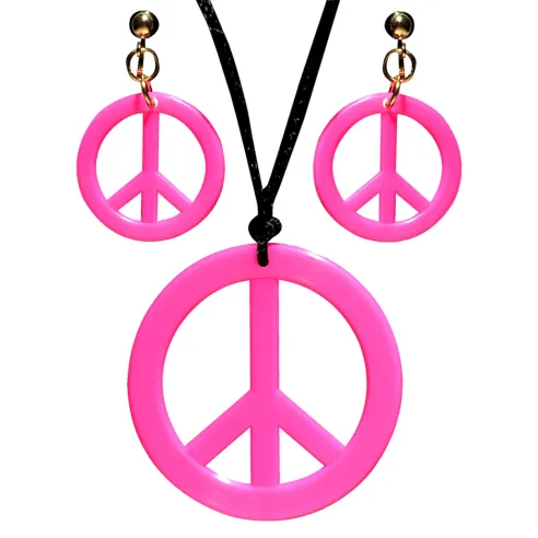 Complétez votre déguisement rétro avec ce collier hippie et ses boucles d’oreilles assorties couleurs fluorescentes. Un ensemble de bijoux inspiré de l’esprit Peace & Love et Flower Power des années 60 et 70.
