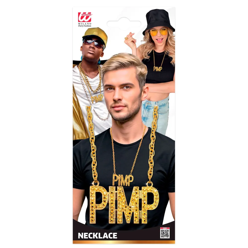 Affichez un style bling bling avec ce collier Pimp doré et brillant, pour sublimer votre déguisement inspiré de la culture hip-hop, rap, pimp ou bien encore des années 80/90.