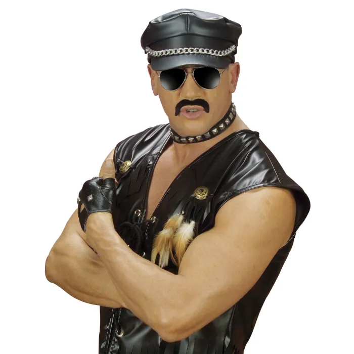 Casquette rocker black en simili cuir noir et chaines