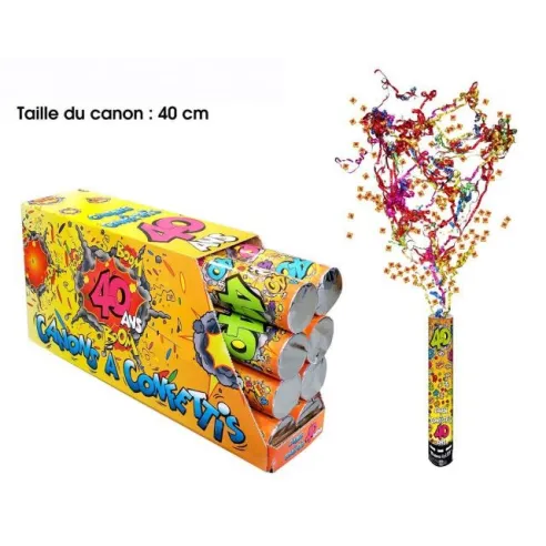 Souhaitez un joyeux anniversaire de manière explosive grâce à ce canon à confettis ... Et BOUM une année plus ! Utilisation facile, il suffit de tourner la poignée du bas pour déclencher le tube et faire jaillir les confettis imprimés recto verso et les serpentins multicouleurs qui seront projetés à 5 mètres.