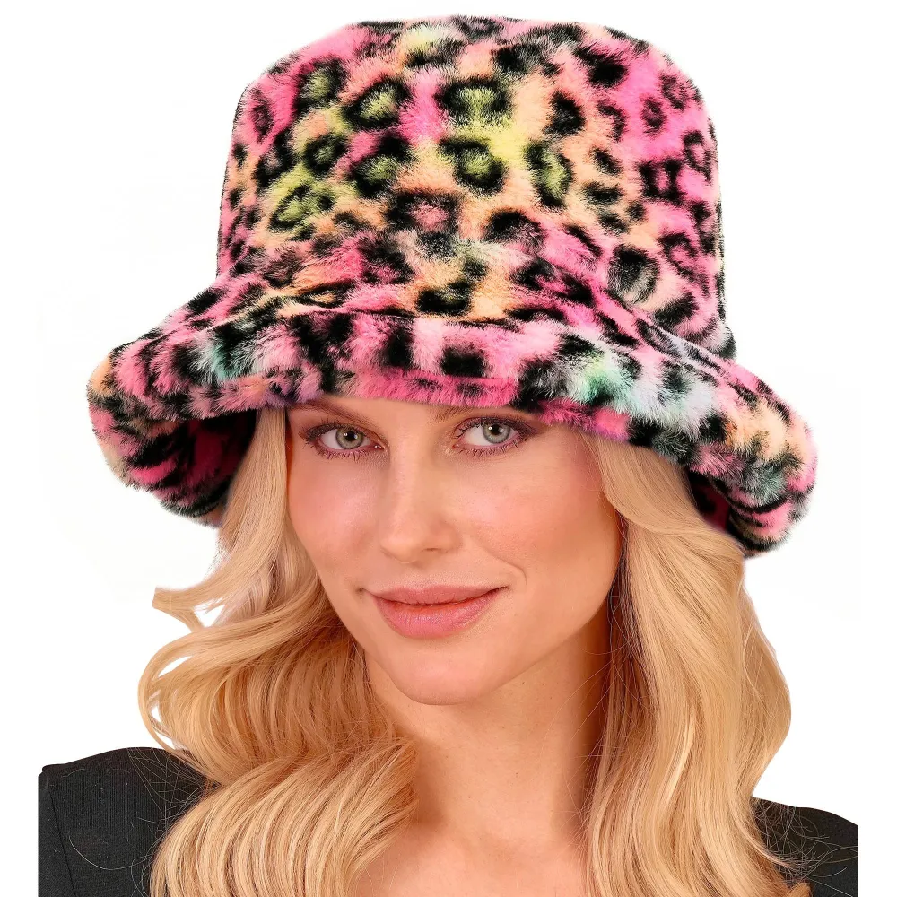 Chapeau de pêcheur en peluche multicolore avec motifs léopard, à porter avec la veste assortie pour se rendre aux différents bals du carnaval de Dunkerque.