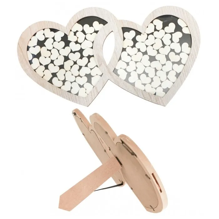 Chaque invité ecrit un petit mot sur l'un des 85 coeurs et vient le glisser dans la petite fente située au dessus du cadre. Cela vous fera un très bon souvenir.