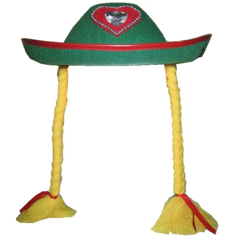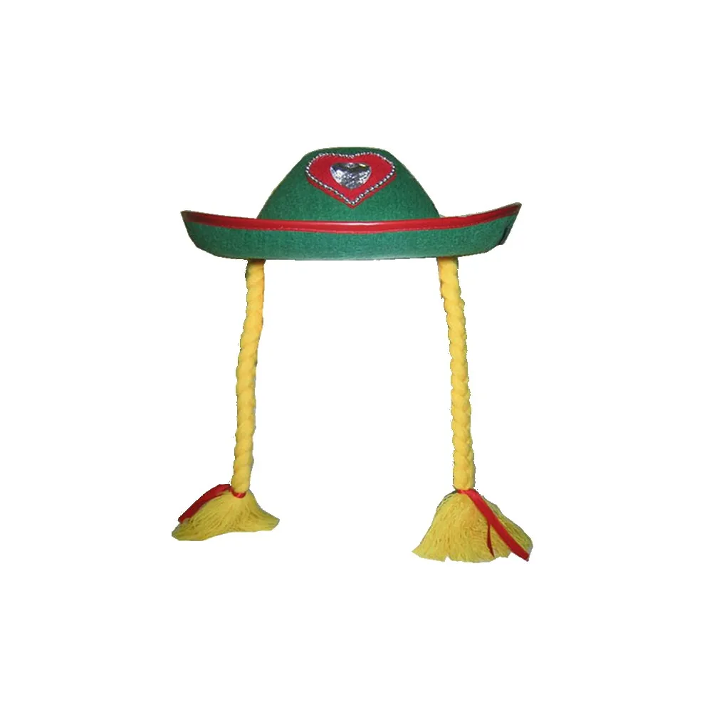 Chapeau de tirolienne en feutrine de couleur verte avec tresses jaunes